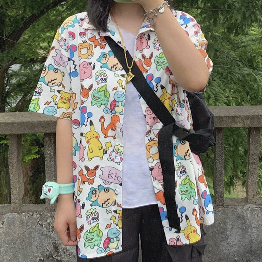 Anime Eeveelutions Button-Up Hawaiian Shirt